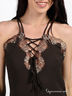 Приталенная длинная сорочка со шнуровкой на спине и груди, на тонких регулируемых бретельках. Декорирована нежным кружевом с атласной вышивкой.