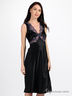 Атласная приталенная сорочка из натурального шелка. V_образный вырез декорирован кружевом.