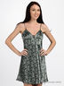 Приталенная сорочка из натурального шелка с оригинальным принтом. Тонкие регулируемые бретельки. Отрезной лиф.