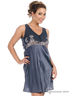 Атласная легкая сорочка с шифоновыми вставками. Без рукавов, полочка украшена оригинальным кружевом, спереди застегивается на пуговицы, талия завязывается на шелковые ленты.