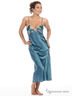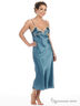 Воздушная атласная сорочка на тонких регулируемых бретельках. Нежно украшена цветочным бежевым кружевом, снизу эротичный разрез.
