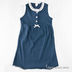 Ночная сорочка расклешенного силуэта на лямках и с застежкой на три пуговицы. Вырез горловины украшен кружевной тесьмой и контрастной окантовкой. Контрастная окантовка пройм. Бантик на линии талии. Край подола обработан оверлоком.