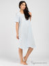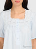 Ночная сорочка прямого покроя из батиста. Короткий рукав. Вырез каре. Планка-застежка на пуговицах. Горловина и кокетка декорированы кружевом.