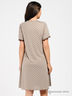 Ночная приталенная сорочка, короткий рукав. V-образный вырез горловины. Планка-застежка на пуговицах. Горловина и рукава декорированы кружевом.