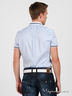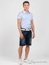 Детали: двойной отложной воротник, короткий рукав, застежка на пуговицы, нагрудный карман