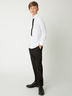 Белая сорочка с суппатной планкой и контрастной отделкой, имитирующей узкий галстук, привнесет в образ школьника индивидуальность. Актуальный прилегающий силуэт, модная форма воротника, мягкая ткань с преобладанием хлопка, комфортная и в носке, и в уходе за изделием, делают сорочку незаменимой для создания стильного делового образа мальчика.