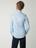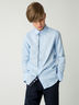 Стильная голубая сорочка прилегающего силуэта - важнейший атрибут школьного гардероба. И в торжественные дни, и в будни, она сделает образ мальчика серьезным, ответственным, деловым. Особый шарм сорочке придает ткань с деликатной фактурой, подчеркивающая элегантность модели.