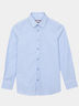 Голубая сорочка с длинным рукавом в мелкий деликатный горох привнесет в образ школьника индивидуальность. Актуальный прилегающий силуэт, модная форма воротника, плотная и мягкая хлопковая ткань, создающая комфорт в носке, делают сорочку незаменимой для создания стильного делового образа мальчика.