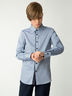 Синяя сорочка с длинным рукавом из ткани "Оксфорд" привнесет в образ школьника индивидуальность. Актуальный прилегающий силуэт, модная форма воротника, плотная и мягкая хлопковая ткань делают сорочку незаменимой для создания стильного делового образа мальчика.