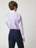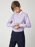 Сиреневая сорочка в тонкую полоску с контрастным белым воротником привнесет в образ школьника индивидуальность. Актуальный прилегающий силуэт, модная форма воротника, плотная и мягкая хлопковая ткань, создающая комфорт, делают сорочку незаменимой для создания стильного делового образа мальчика.