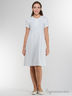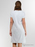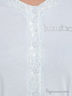 Сорочка средней длины. Рукав короткий с манжетом. Сорочка отрезная под грудью. На животе и груди защипы. За счет защипов в области груди подходит для разного объёма груди. Спереди застёжка-планка на пуговицах. Отделка по низу сорочки, рукавам и планке из кружева. На груди логотип марки "Lunatiсa" выполненный из страз.