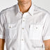 Стильная мужская сорочка с коротким рукавом. Спереди два накладных кармана, на рукавах отвороты. Модель приталенная. Застежка на пуговицы.