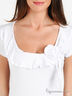 Детали: вырез горловины лодочка, короткие рукава, отделка рюшей с оригинальным цветком из основной ткани