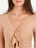 Детали: V-образный вырез горловины, короткие рукава, по полочке оригинальная отделка рюшей