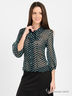 Стильная сорочка прямого кроя с застежкой на пуговицы и воротником стройка. Укороченные рукава. Выполнена из приятного на ощупь, полупрозрачного материала. Воротник переходит в декоративные ленты. Прекрасный вариант на каждый день!