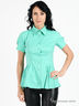 Детали: отложной ворот-стойка, застежка на пуговицы, короткий рукав, удлиненная модель, складки