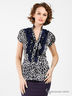 Детали: V-образный вырез горловины, короткие рукава, полочка изделия декорирована воланами