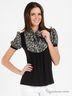 Детали: круглый вырез с резинкой, короткие рукава, по подолу ткань же выполненная резинка, с небольшой рюшей