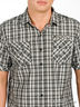 Накладные карманы на груди, силуэт приталенный. По вороту внутри пришит яркий кант. Такая же отстрочка по низу сорочки. Дополнительный прорезной карман на груди. Принт на рукаве.