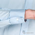 Однотонная мужская рубашка нежного голубого цвета с благородным отливом. Воротник отложной. Застежка спереди на пуговицы по всей длине изделия. Длинные рукава с регулируемыми манжетами с застежкой под запонку. Хлопковая ткань дышит, создаёт эффект прохлады в жаркий день, приятна на ощупь. Качественное исполнение каждой детали, двойные боковые швы.