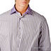 Выразительная мужская рубашка с длинным рукавом серая в лиловую полоску. Воротник отложной. Приталенный силуэт. Застежка спереди на пуговицы по всей длине изделия. Длинные рукава с регулируемыми манжетами с застежкой на пуговицу. Хлопковая ткань дышит, создаёт эффект прохлады в жаркий день, приятна на ощупь. Качественное исполнение каждой детали, двойные боковые швы.