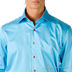 Выразительная мужская рубашка с длинным рукавом бирюзового цвета. Воротник отложной. Приталенный силуэт. Застежка спереди на пуговицы по всей длине изделия. Длинные рукава с регулируемыми манжетами с застежкой на пуговицу. Хлопковая ткань дышит, создаёт эффект прохлады в жаркий день, приятна на ощупь. Качественное исполнение каждой детали, двойные боковые швы.
