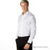 Выразительная мужская рубашка с длинным рукавом белого цвета. Воротник отложной. Приталенный силуэт. Застежка спереди на пуговицы по всей длине изделия. Длинные рукава с регулируемыми манжетами с застежкой на пуговицу. Хлопковая ткань дышит, создаёт эффект прохлады в жаркий день, приятна на ощупь. Качественное исполнение каждой детали, двойные боковые швы.