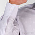Однотонная мужская рубашка нежного сиреневого цвета с благородным отливом. Воротник отложной. Застежка спереди на пуговицы по всей длине изделия. Длинные рукава с регулируемыми манжетами с застежкой под запонку. Качественное исполнение каждой детали, двойные боковые швы.