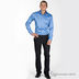 Яркая модная мужская рубашка с контрастными голубыми манжетами и воротником. Воротник отложной, двойной. Застежка спереди на пуговицы по всей длине изделия. Длинные рукава с регулируемыми манжетами с застежкой на пуговицу. Качественное исполнение каждой детали, двойные боковые швы.