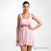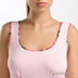 Изящная сорочка без рукавов нежного цвета. Вырез горловины, низ сорочки и проймы рукавов отделаны тонкой оборкой. Под лифом кружевная вставка.