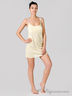 Яркая струящаяся сорочка приталенного силуэта на тонких регулируемых бретелях, раздвоенных спереди. Лиф с вытачками украшен изящными розочками и выполнен из материала в два слоя.