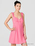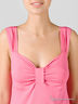 Яркая струящаяся сорочка из приятного на ощупь материала. Лиф с декоративной шлевкой украшен изящными складочками. Широкие бретели сужаются к основанию. Спинка с эластичной резинкой украшена тонкой кружевной тесьмой розового цвета.