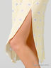 Яркая длинная сорочка из натурального материала, приятного к телу, декорирована принтом. V-образный вырез отделан тонкой атласной тесьмой с бантиком. Сбоку на подоле округлый вырез в 37 см.