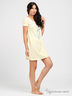 Детали: круглый вырез; короткий рукав на резинке; завышенная талия дополнена кулиской, в которую продета контрастная ленточка; оригинальный принт