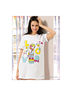 Классическая сорочка свободного силуэта выполнена из тонкого трикотажа. Округлый вырез горловины, короткий прямой рукав, полочка декорирована оригинальным набивным рисунком.