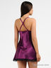 Изящная сорочка приталенного силуэта выполнена из нежного итальянского хлопкового атласа. Отрезной кружевной лиф дополнен тонкими лямками, перекрещивающимися на спине, полочка декорирована эротичным овальным вырезом со стразами, низ изделия декорирован гипюровым кружевом с атласной лентой.