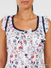 Детали: лямки, округлый вырез горловины, по боковым швам пришиты ленты-завязки, два кармашка по боковым швам, нагрудный кармашек, застежка на пуговицы на полочке, принты