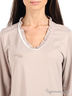 Детали: V-образный вырез и манжеты декорированы оригинальными бархатистыми вставками и оборками