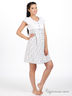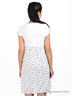 Детали: округлый вырез горловины, застежка на три пуговицы, вырез горловины и края рукавов обработаны оверлоком, линия отреза лифа подчеркнута тесьмой с бантиком, подол декорирован "ягодными" принтами