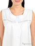 Детали: округлый вырез горловины, застежка на пять пуговиц, полочка декорирована кружевом и атласной лентой, защипы