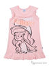 Комфортная ночная сорочка для девочки из эластичного трикотажа. Горловина обработана трикотажной бейкой, рукава-крылышки изделия с обработанными краями, кокетка декорирована рюшей. Изделие украшено ярким принтом с глиттерным напылением.