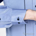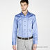 Красивая однотонная мужская рубашка синего цвета с благородным отливом. Спереди выполнены декоративные черные линии. Воротник отложной. Застежка спереди на пуговицы по всей длине изделия. Длинные рукава с регулируемыми манжетами с застежкой на пуговицу. Хлопковая ткань дышит, создаёт эффект прохлады в жаркий день, приятна на ощупь. Качественное исполнение каждой детали, двойные боковые швы.