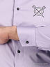 Классическая мужская сорочка с отложным воротом и застежкой на пуговицы. Манжеты на пуговицах. Контрастные нашивки на локтях, планке застежки, внутренней части манжет и внутренней стороне воротника. Декоративная вышивка на полочке.