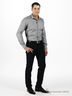 Классическая мужская сорочка с отложным воротом и застежкой на пуговицы. Манжеты на пуговицах. Контрастная окантовка планки застежки.