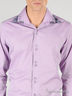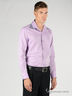 Однотонная мужская рубашка из фактурной ткани в мелкую клеточку с контрастной отделкой воротника в модный турецкий огурец. Воротник отложной, двойной на пуговицах. Застежка спереди на пуговицы по всей длине изделия. Длинные рукава с регулируемыми манжетами с застежкой на три пуговицы. Качественное исполнение каждой детали, двойные боковые швы.