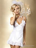 Очень красивая, белоснежная сорочка из мягкой эластичной ткани. Под грудью подрезы, на груди вытачки, что подходит для разного объема груди. Лиф из полупрозрачного кружева. На тонких бретелях декор - атласные банты. Сорочка приталенная, по низу волан из этой же ткани. Сзади спина открыта до лопаток.
