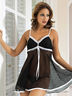 Полупрозрачная сорочка свободного силуэта на тонких бретелях. Отрезной лиф декорирован оборками и атласной лентой.