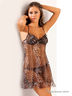 Полупрозрачная сорочка приталенного силуэта на тонких бретелях. Отрезной лиф декорирован оборками, низ изделия декорирован оборкой.
