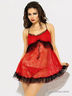 Полупрозрачная сорочка свободного силуэта на тонких бретелях. Отрезной лиф декорирован оборками и атласным бантом, низ изделия декорирован оборкой.