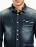 Классическая джинсовая сорочка прямого кроя из тонкой хлопковой ткани. Застегивается на пуговицы. Отложной воротник. Длинный прямой рукав на манжете с пуговицей. Два накладных кармана. Один внутренний карман.